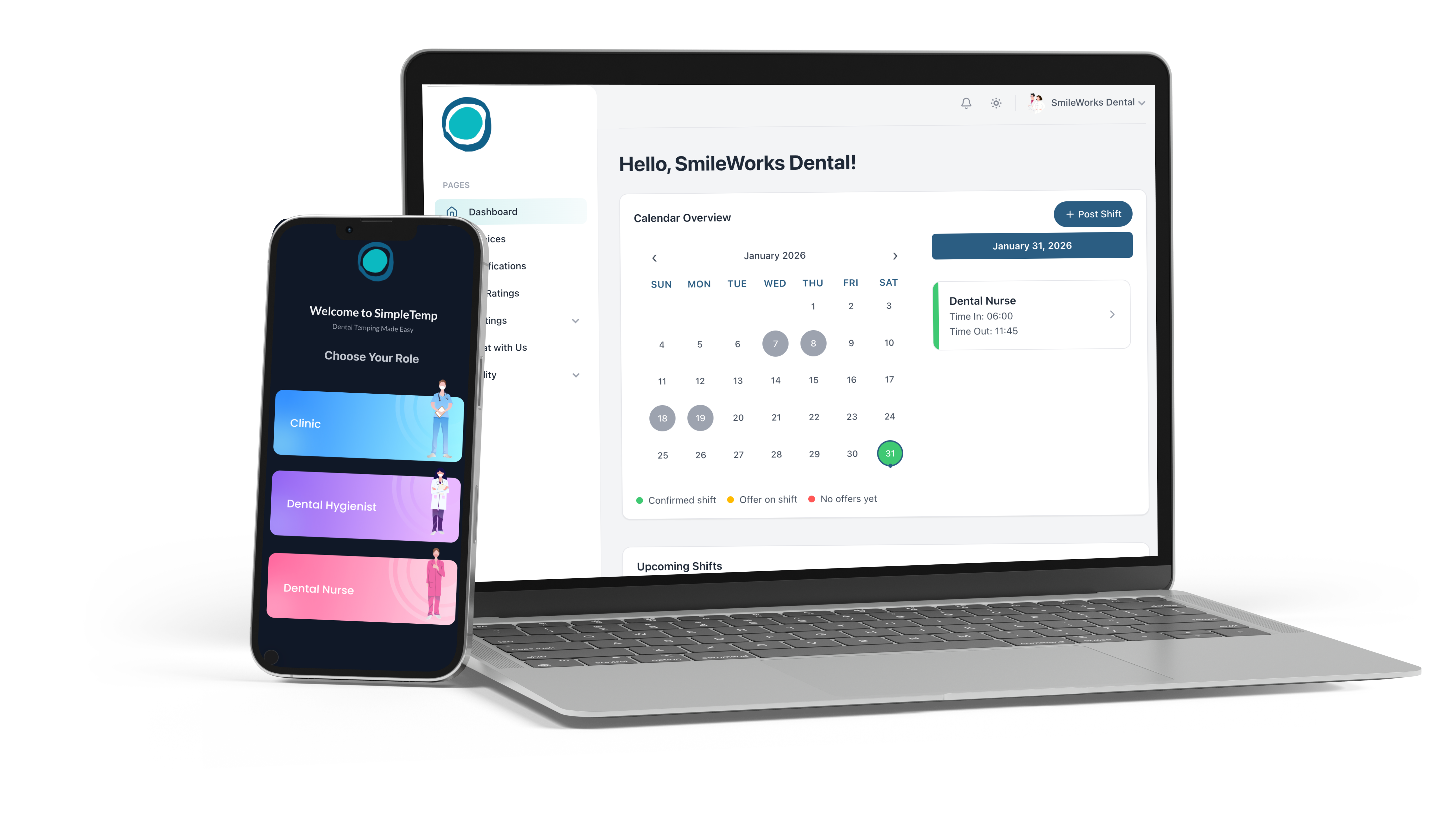 SimpleTemp is a dental staffing platform that connects dental clinics with hygienists and dental nurses for short-notice and short-term temp shifts — without agencies.